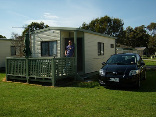 Da wir uns auf einem Campingplatz direkt an der Parkgrenze eingemietet hatten, aber nicht für Vorräte gesorgt hatten, mussten wir noch in die nächste Stadt Foster fahren (Ja, da kommt das Bier her). Auf einer Strecke von 70km begegneten uns etwa 10 Wombats. Deswegen fuhr ich langsam (wir brauchten über eine Stunde für eine Strecke), bremste und wartete bis das faule Beuteltier sich von der Straße gemacht hatte. Nach dem Abendessen in der nicht gerade einladenden "Stadt" zeigte sich, dass Australier nicht die gleiche Geduld mit den Wombats hatten. Ungefähr ein halbes Dutzend lag überfahren neben der Straße.