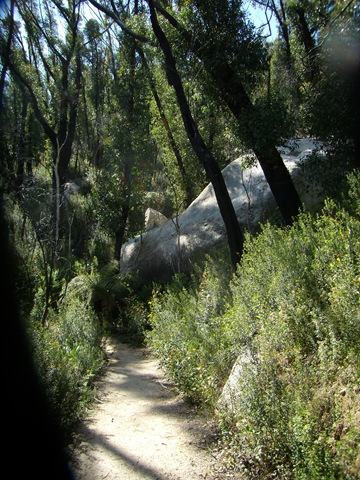 Der erste Abschnitt der Strecke ging bergauf durch ein Tal, in dem vor zwei Jahren Waldbrände gewütet hatten. Interessanterweise sind diese Brände Teil des Ökosystems. Eukalyptusbäume überstehen die Feuer angebrannt aber ansonsten unbeschadet, während Konkurrenzpflanzen verbrennen.